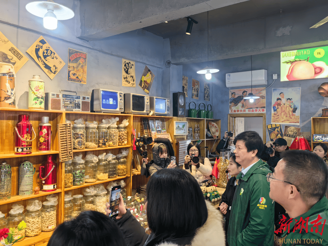 车厢外,“郴邀大湾区 ‘湘粤’向未来”“走遍五大洲 最美有郴州”的标语引得无数游子打卡拍照;车厢里,郴州裕后街、北街的老照片挂满内壁,酱板鸭、麻辣豆干等本土零食供人免费品尝,郴州曲艺表演轮番上演。