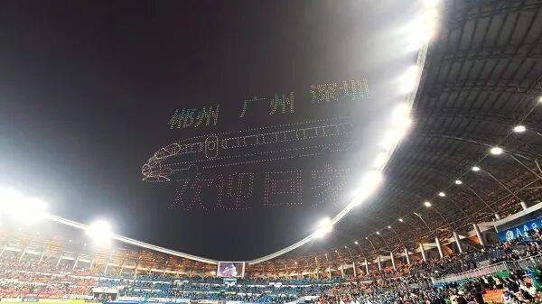 (2026年元旦假期,一场主题为“‘湘粤’郴州·超越梦想”的足球邀请赛在郴州体育中心打响,图为无人机群“描绘”的壮美图景。陈哲君 摄)