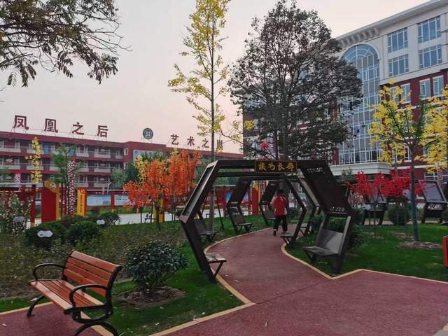 漫步宁晋五中校园,浓郁的艺术气息与文化底蕴扑面而来。校徽中由“5”字演化而来的书本与艺术之窗,寓意着通过艺术教育开启智慧之门;校歌《凤凰励志传人》深情吟唱凤凰城文化,传递着坚韧不拔的成长力量;象征“金榜题名”的榉树枝繁叶茂,寓意“坚韧绽放”的木槿花次第开放,繁花似锦,一草一木、一景一物都在诉说着艺术与成长的故事。红色文化公园内,红船、井冈山等红色标志与学生书画作品相映成趣;读书长廊、艺术文化墙错落有致,让校园成为“处处皆课堂,时时可艺术”的育人空间,使学生在耳濡目染中感受美、体悟美。